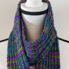 Hand Knit Scarf in Green and Purple Multicolors